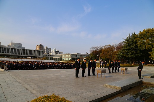 私たちは二日目の朝に犠牲者を悼み平和記念公園の献花台にて献花し、非常に厳粛な空気の中、黙祷、二礼二拍手一礼の作法にて参拝致しました。世界の国々、特に中東の一部の地域においては未だにイラク戦争の収集がつかず、内戦が続いている所もあります。それらの混沌とした内戦は、我々日本人にとって対岸の火事では済まされません。日々のニュースの中でミサイル発射や軍事攻撃などの情報を耳にする度に明治天皇御製の『よもの海 みなはら からと 思ふ世に など波風の たちさわぐらむ』という歌が思い起こされます。