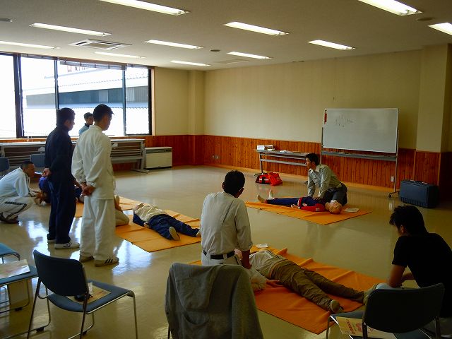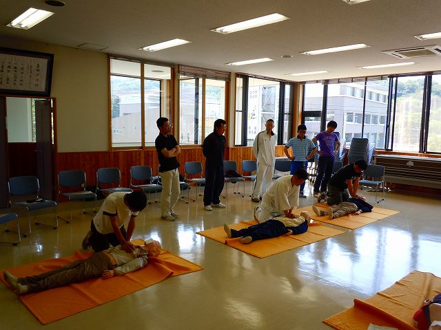 今回の消防士さんは小中学校の同級生で、よく知る顔だったのもありますが、非常に丁寧で豪快で解りやすく、普段は教わらないような深いところまで話して頂き、会員皆の表情もまた真剣そのものでした。今後は上級救命講習を含め検討してほしいと思っています。