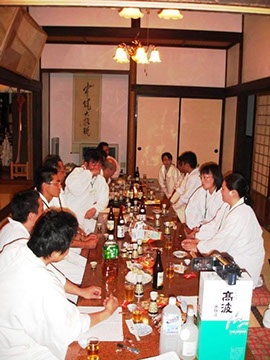 終了後、研修会場である戸隠中社周辺の各宿坊へ移動し、御祈祷を受け、夕食後に会員間の親睦を深める為に座談会を行いました。『祈りの村から今を見つめる』と題し、単位会会長を座長として宿坊毎様々な話題について意見を出し合いました。