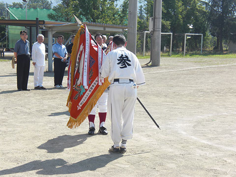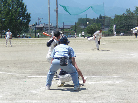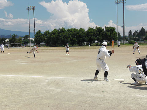 7月11日 安曇野市は豊科県民運動広場に長野県下の神社関係者が集まって、恒例の親睦球技大会が開催されました。当日は将に熱中症が心配されるような今年一番の暑さの中、県内各地区により編成された8チームが熱戦を繰り広げました。今年は40回記念大会という事で、各チーム名入りの記念バットが開会式で贈呈され、そのバットのお蔭か各試合に於いて快音が連発されていました。8チームによるトーナメント戦が2コートで繰り広げられましたが、結果は、優勝はまたしても東信チームがさらってしまいました。やはり今年も東信のエースを打ち崩すのは難しかったようです。しかし、例年よりも接戦が多かったように感じました。来年は打倒東信を合言葉に各チームがレベルアップをして試合に臨んでくる事でしょう。