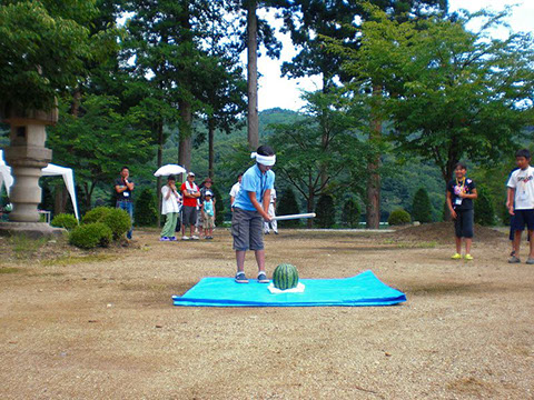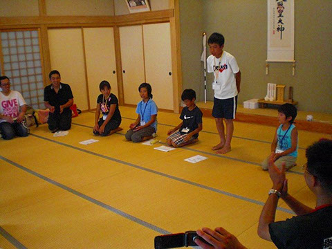私は昨年の八月に長野県の神職として任命されてより初めてのサマーキャンプに参加しました。 今までは父が神職ということもあり幼少の頃より参加致しておりましたが、今回は今までとは違い、運営する立場で参加させていただきました。子供の頃は参加して遊んだり何か物を作ったり時には様々な事をして会員の皆様と触れ合うことが出来ました。 キャンプ期間中は雨が降ったり止んだりと忙しない初日と、晴天に恵まれた二日目でありました。キャンプの前に事前の準備や設置など子供の頃は思いもよらない事もあり、あらためて会員の皆様の苦労を知りました。初日に行った勾玉制作では子供達と一緒になって制作没頭し、火起こしでは子供達が一生懸命に火をつけようと頑張っていました。夕食後は子供達と花火を行いました。二日目は、前日とはうって変わって良く晴れ、子供達は木崎湖での遊泳を心待ちにしていました。遊泳が終わって宿泊をさせていただきました仁科神社に戻り、一泊二日のサマーキャンプも終わりに近づき、神社で解散式を行いキャンプの感想を代表の男の子が発表し解散となりました。 自分もこのキャンプに参加して火の尊さ・物を作る事の大変さなどを改めて感じました。 自然の尊さや、参加者と共に食事をして食べる事の大切さを共有出来たことは貴重な経験となりました。