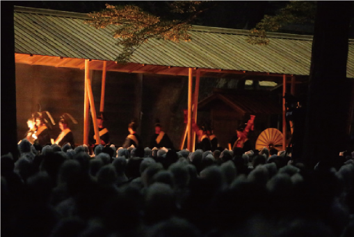 出御「しゅつぎょ」から入御「にゅうぎょ」までは板垣御門内で控えていましたが、内宮の浄闇・鶏鳴「けいめい」三声・そのうちに道楽が聞こえて来ると絹垣に覆われて通り過ぎてゆく『御』「ぎょ」を間近で感じる事が出来ました。ご奉仕への感謝の念と、一言では申し上げられない感激と感動がありました。