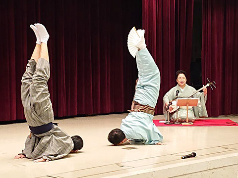 研修後、長良川にて鵜飼船に乗船し、舟の上での懇親会が予定されておりましたが、先の台風の影響を受け川水の増水が懸念された為残念ながら中止となってしまい、ホテル会場での懇親会となりました。途中には鳳川技連の方々の芸披露があり、講義同様目の前で見る芸舞伎に皆魅了されておりました。