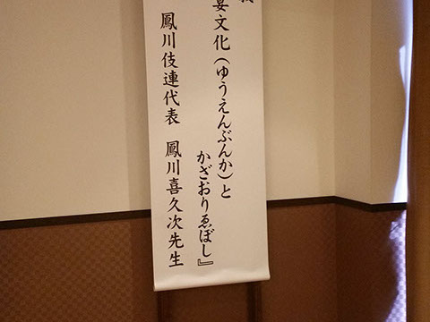 第2講では、『遊宴文化とかざおりゑぼし』と題し、鳳川喜久次先生より御講義を賜りました。幇間、邦楽囃子方、岐阜歌舞伎保存会代表、地歌舞伎振付師であり、全国でも8名程となった男芸者の1人との事でした。引き込まれる様な話術や、実際に目の前で舞のご披露もいただき、その迫力、可憐さに感動致しました。